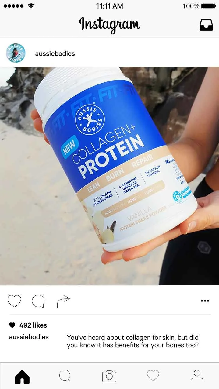 Social media management for Aussie Bodies’ Instagram and Facebook accounts including content strategy, ideation, paid and organic, campaigns, design, copywriting and production.